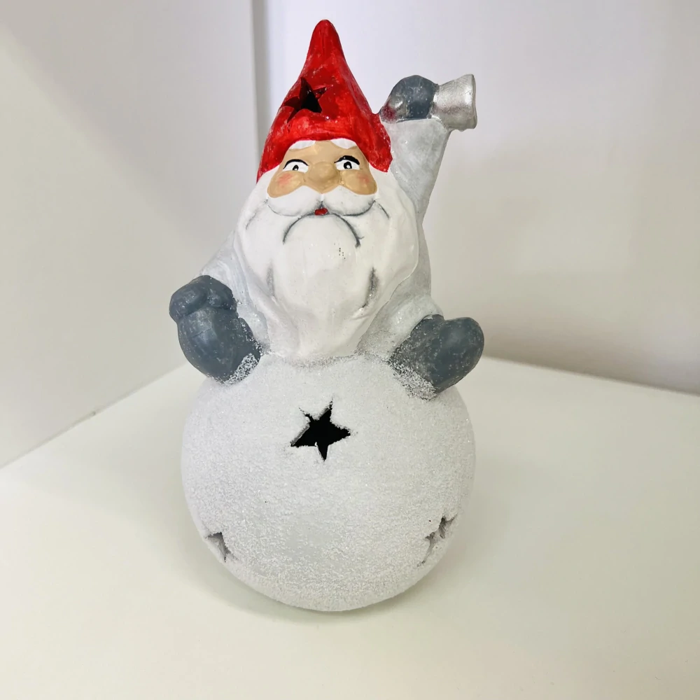 Vánoční figurka Mikuláše sedícího na sněhové kouli s led osvětlením