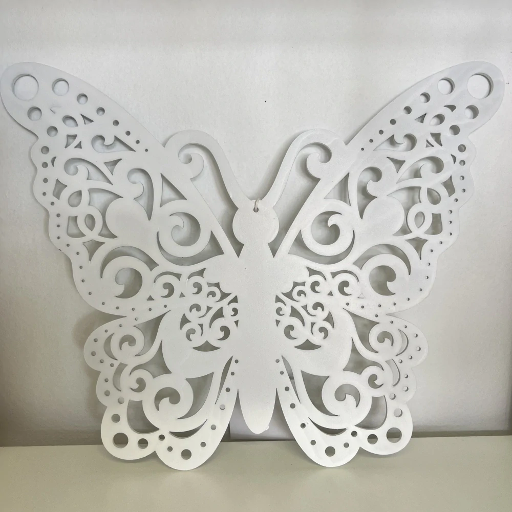 Tato kráska o velikosti 29 x 24,5 cm je vyřezaná z materiálu na bázi dřeva a okouzlí propracovaným ornamentálním vzorem 🪄🌿. Vhodná k zavěšení na zeď nebo jako ozdoba do oken, na terasu či do dětského pokoje 🏡🌸.