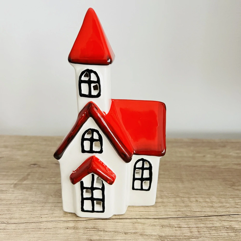 DEKORACE KERAMICKÝ DOMEK S VĚŽIČKOU NA ČAJOVOU SVÍČKUskladem 1 ks205 Kč/ ks