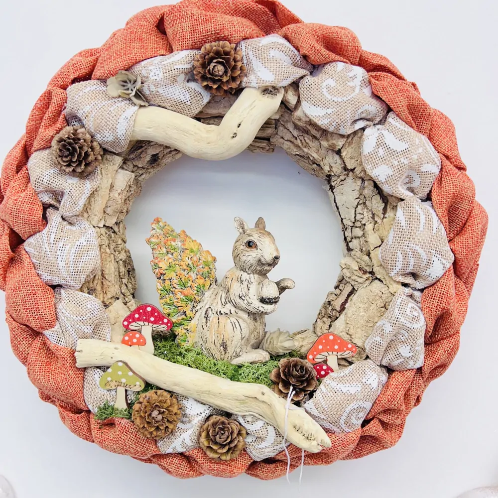 Podzimní dekorace věnec na dveře s figurkou