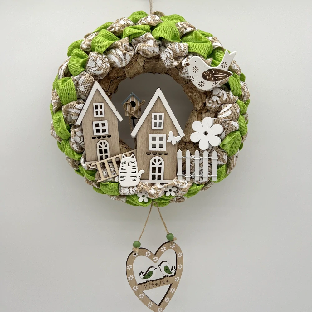 🌿🏡 Dekorační věnec s domečky – Vítejte 🏡🌿
