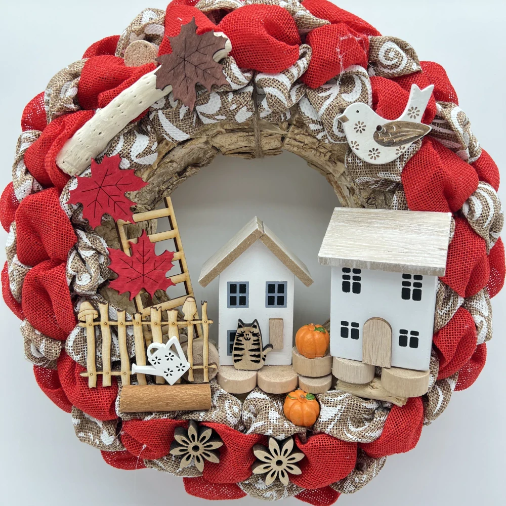 Laskavý věneček s motivem podzimního domova – ideální na dveře i jako dárek.