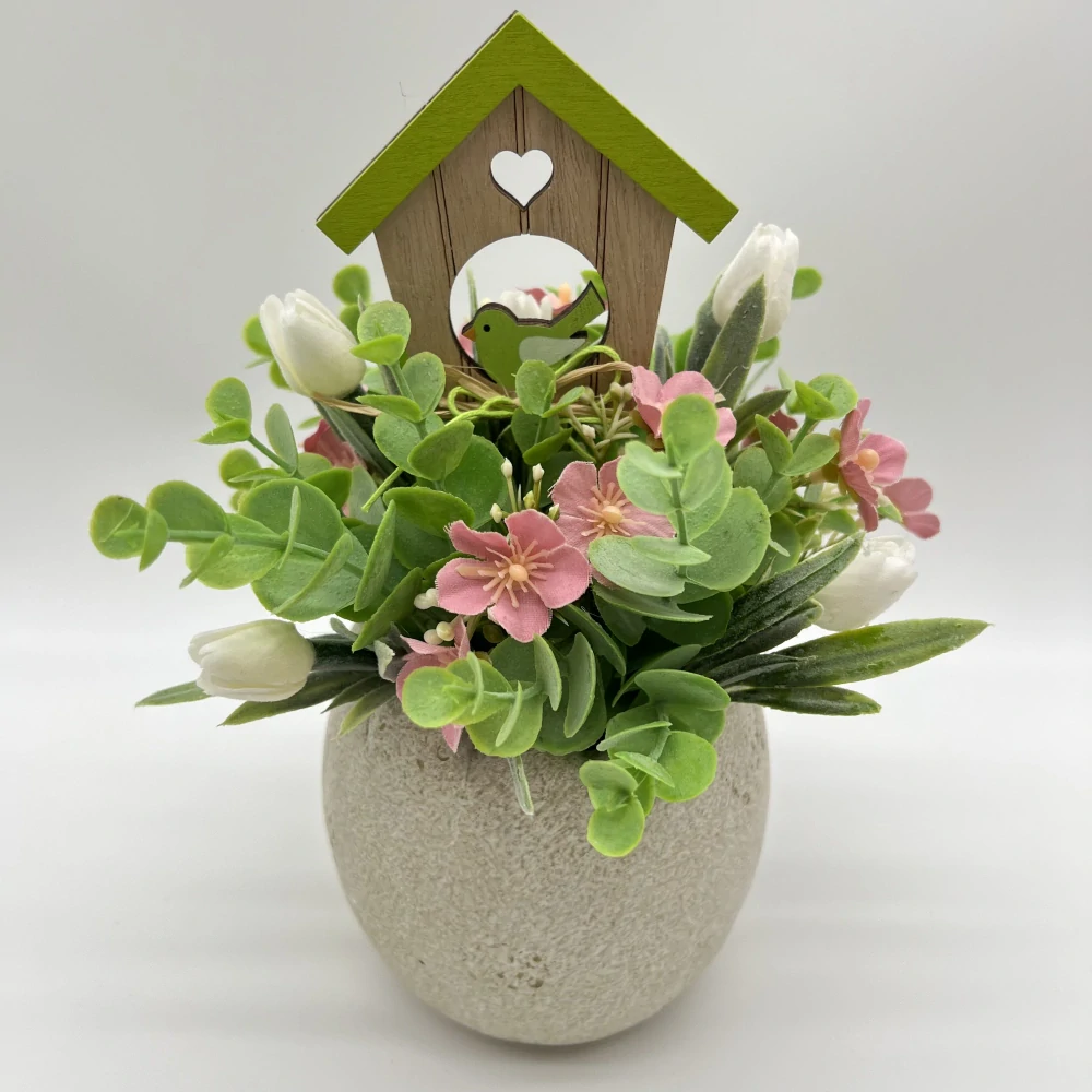 Jarní dekorace skořápka zdobená umělými květy - zápich budka lze vyjmout