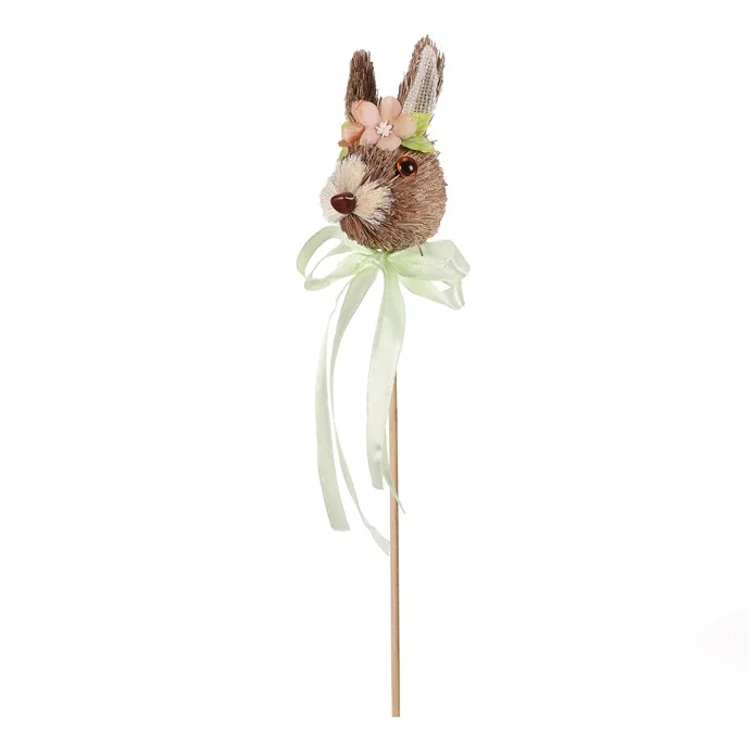 Hlava zajíce na špejli se slaměným povrchem a světle hnědou barvou přidá do vašich dekorací přírodní kouzlo. Ozdobná zelená mašle zajíčka krásně doplňuje, ať už jej zapíchnete do truhlíku, květináče nebo záhonu. Skvělý doplněk pro jarní a velikonoční výzdobu