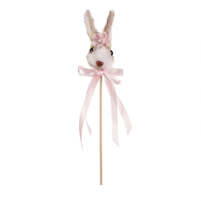 Hlava zajíce na špejli se slaměným povrchem a světle hnědou barvou přidá do vašich dekorací přírodní kouzlo. Ozdobná růžová mašle zajíčka krásně doplňuje, ať už jej zapíchnete do truhlíku, květináče nebo záhonu. Skvělý doplněk pro jarní a velikonoční výzdobu.