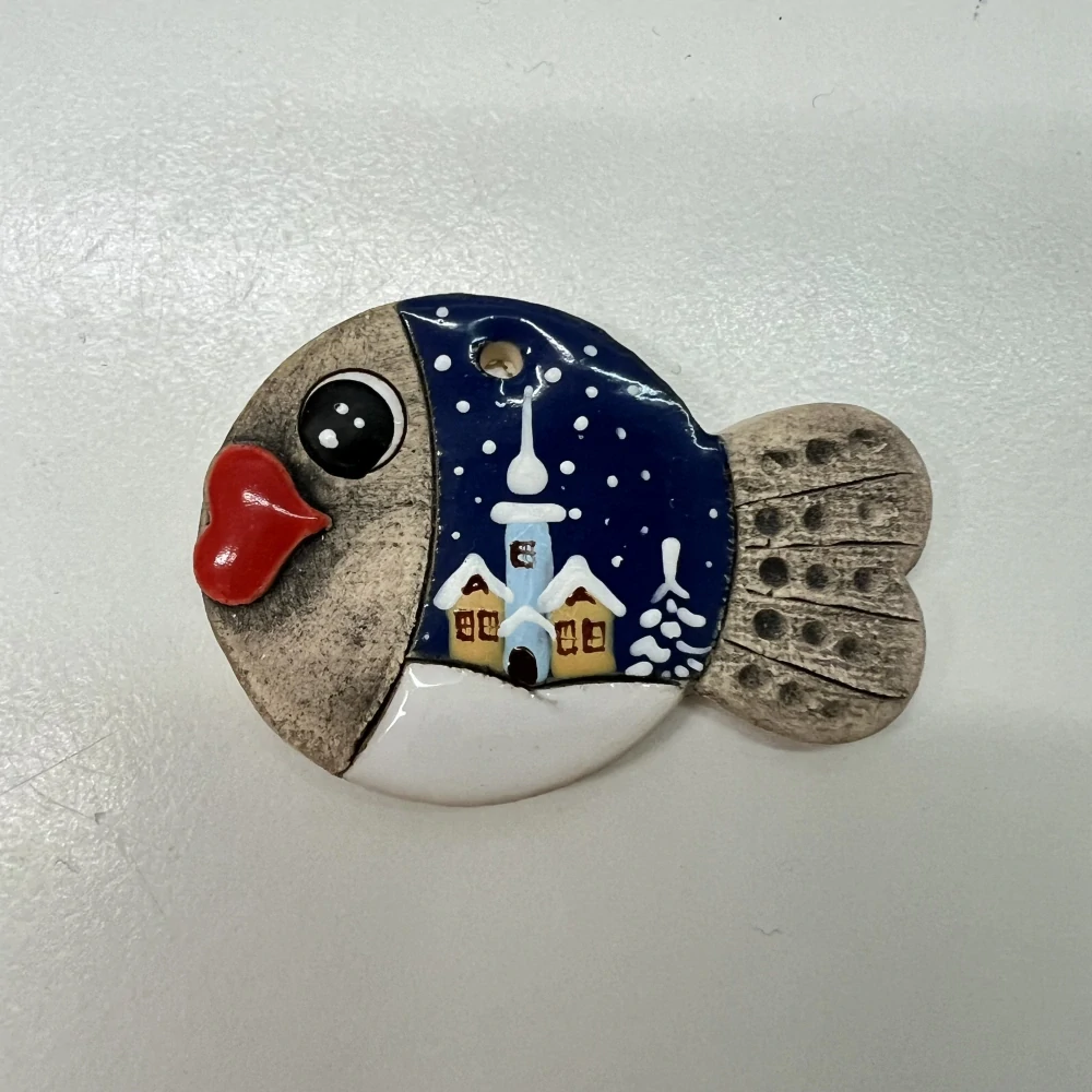 🌟 Keramická rybička k zavěšení – zimní motiv
