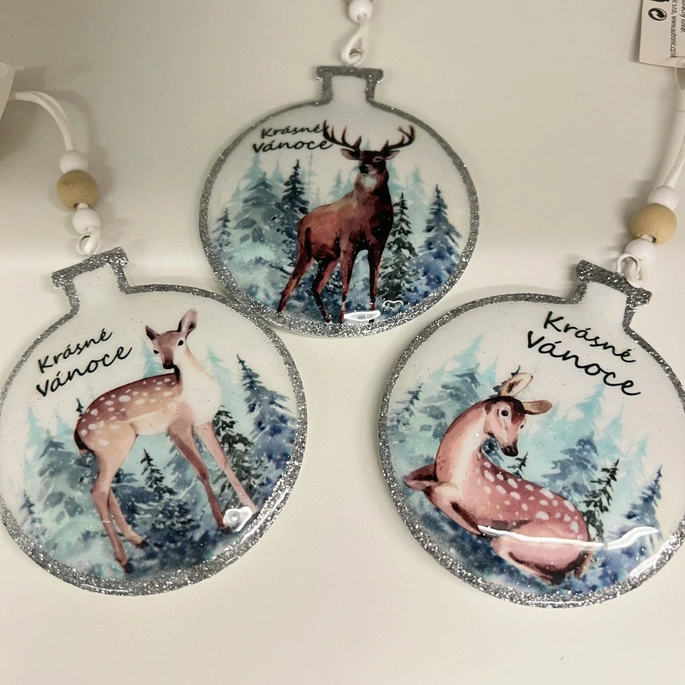 Kouzelná vánoční dekorace s jemným zimním nádechem ❄️. Kovové ověsky ve tvaru baňky s motivy lesa a lesní zvěře vnesou do vašeho domova klid, pohodu a pravou vánoční atmosféru. Každý kus zdobí třpytivý okraj a nápis „Krásné Vánoce“, který potěší na první pohled.