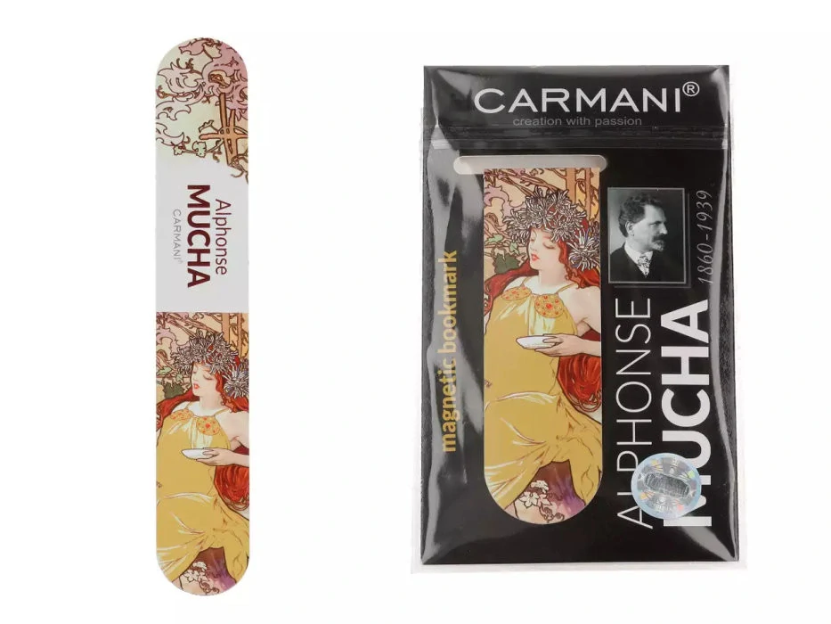 Elegantní magnetická záložka s nádherným secesním motivem od Alfonse Muchy. Spojuje praktičnost s uměním a dodá každé knize jedinečný styl 💛