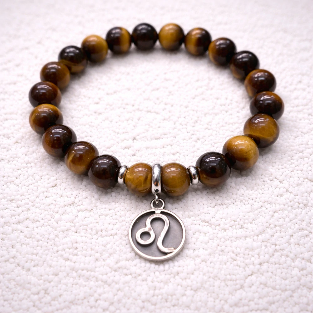 Elegantní náramek z přírodního tygřího oka, doplněný symbolem znamení Lva, který podtrhuje sílu, odvahu a sebevědomí svého nositele.