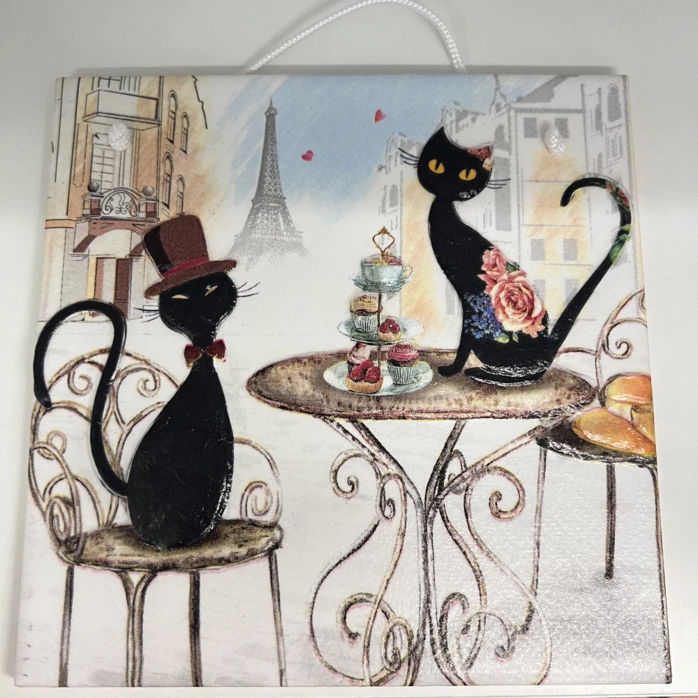 🐾 Zdobená keramická dlaždice – Kočky v Paříži 🇫🇷skladem180 Kč/ ks