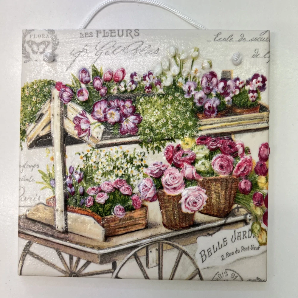 🌷 Zdobená keramická dlaždice – Květinový stánek 🌿skladem 2 ks180 Kč/ ks
