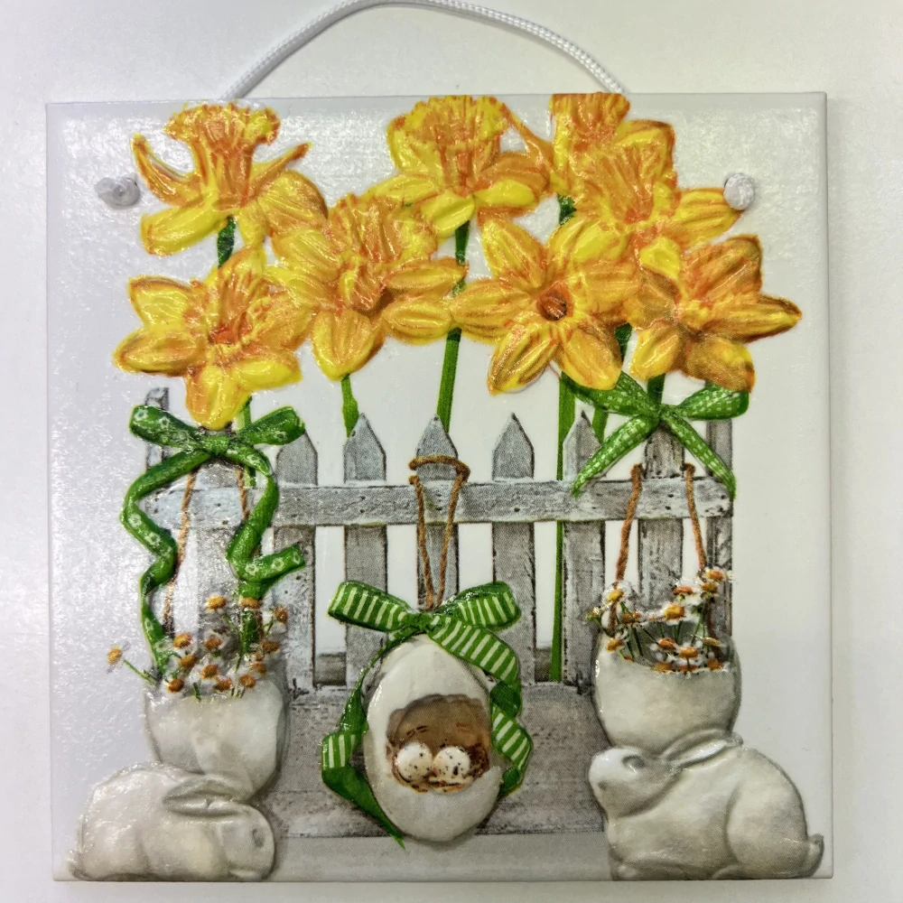 - 🌼 Zdobená keramická dlaždice – Jarní probuzení 🐰