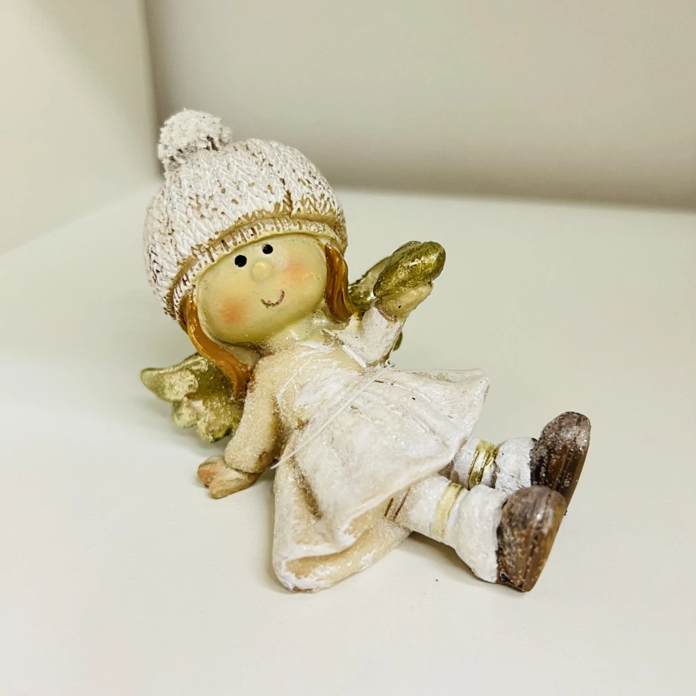 - ZIMNÍ DEKORACE FIGURKA ANDĚLKY SE SRDÍČKEM LEŽÍCÍ