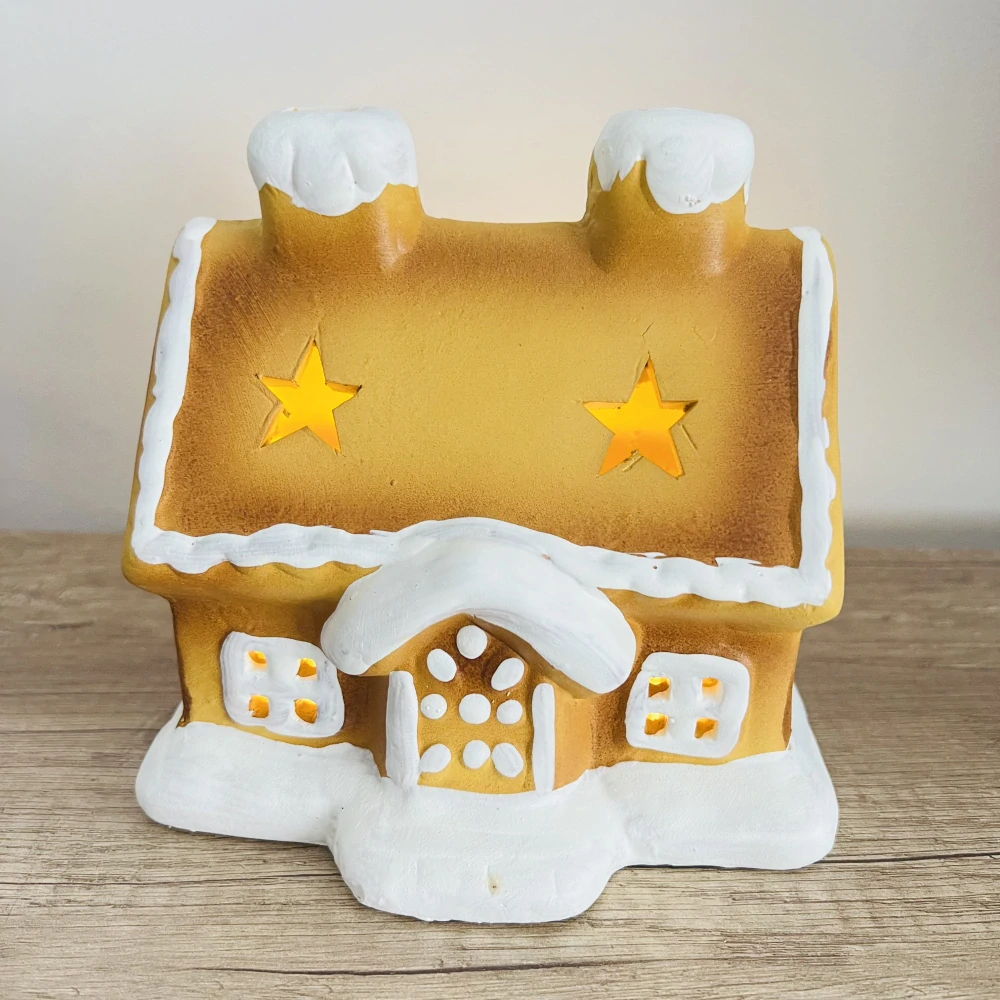 Zimní dekorace perníkový domek na čajovou nebo LED svíčku